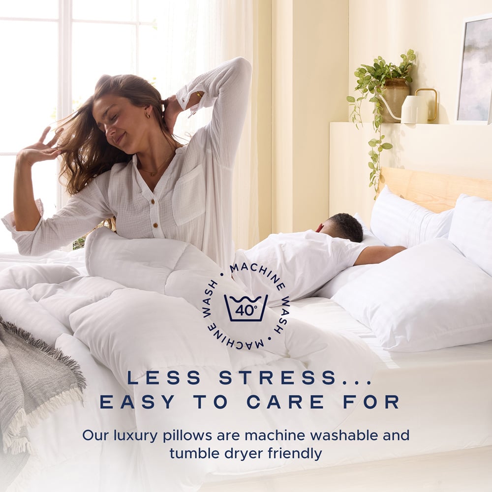 Experience a peaceful night's sleep with the Snuggledown Scandinavian Hollowfibre Medium Support Pillow 2 Pack. Ultra soft and breathable, this pillow is generously filled with hollow fibre to ensure you're comfortable through the night. It's hypoallergenic to prevent triggering common allergies while the soft-to-touch cover promises added comfort. With a medium support level, it's an ideal fit for both side and back sleepers. Care Instructions: Machine washable at 40° and can be tumble dried.