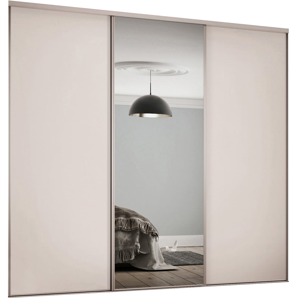 Spacepro Classic 3 Door Cashmere Frame Sliding Wardrobe Kit with 2 Panel and Single Mirror 2216mm