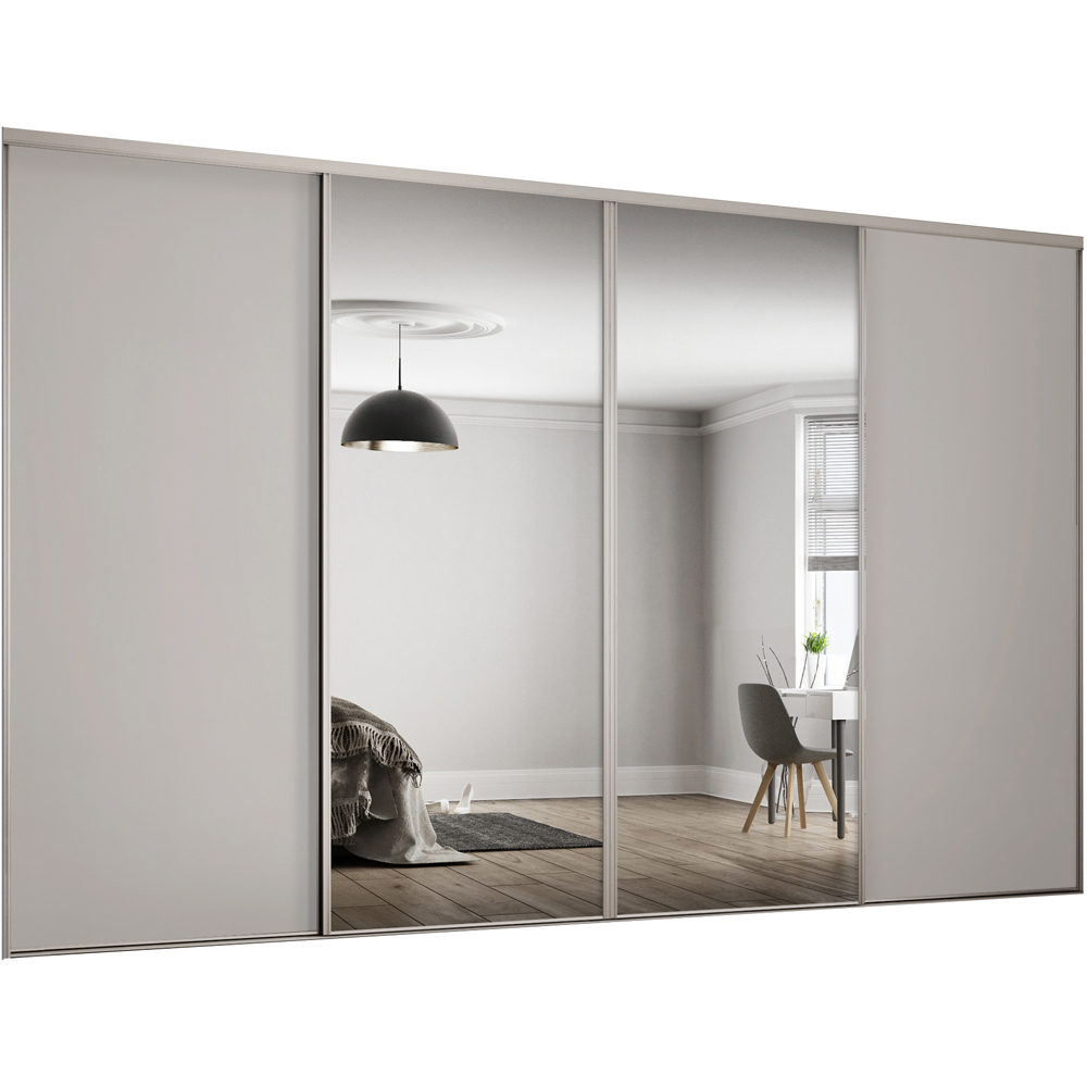 Spacepro Classic 4 Door Cashmere Frame Sliding Wardrobe Kit with 2 Panel and 2 Mirror 3586mm