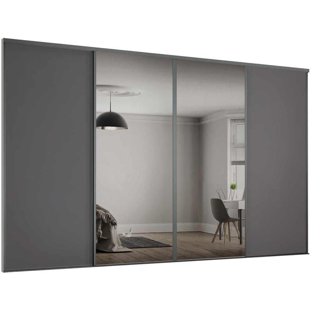 Spacepro Classic 4 Door Graphite Frame Sliding Wardrobe Kit with 2 Panel and 2 Mirror 2370mm