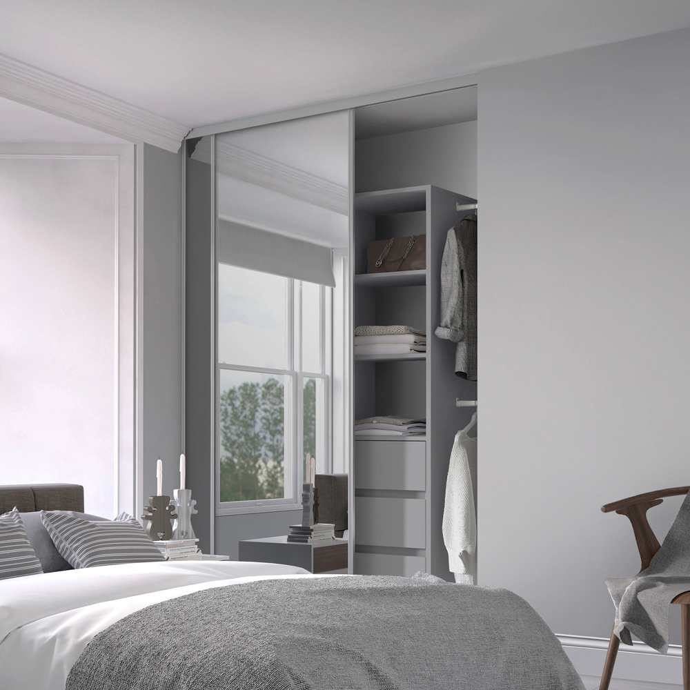 Spacepro Classic Single Panel Dove Grey Frame Mirror Sliding Door 610mm