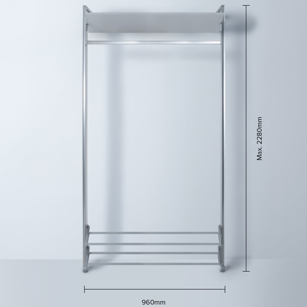 The Relax storage system can run from floor to ceiling or floor to wall depending on your space. Reorganise your storage, add accessories, shoe racks or additional shelving as often as you like.