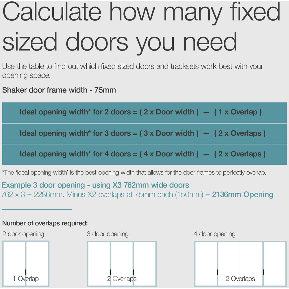 The Shaker range offers you the flexibility to create either a contemporary or more traditional look in either a mirror or panel combination. Two guides are attached to the top of the door and two wheels to the bottom which allows the door to slide along the track set. These doors fit an opening height of 2260mm. Looking for made-to-measure doors and interiors? Visit www.homebaseslidingdoors.co.uk - powered by Spacepro, the market leading manufacturer of sliding wardrobe doors, wardrobe storage systems and wardrobe interiors.