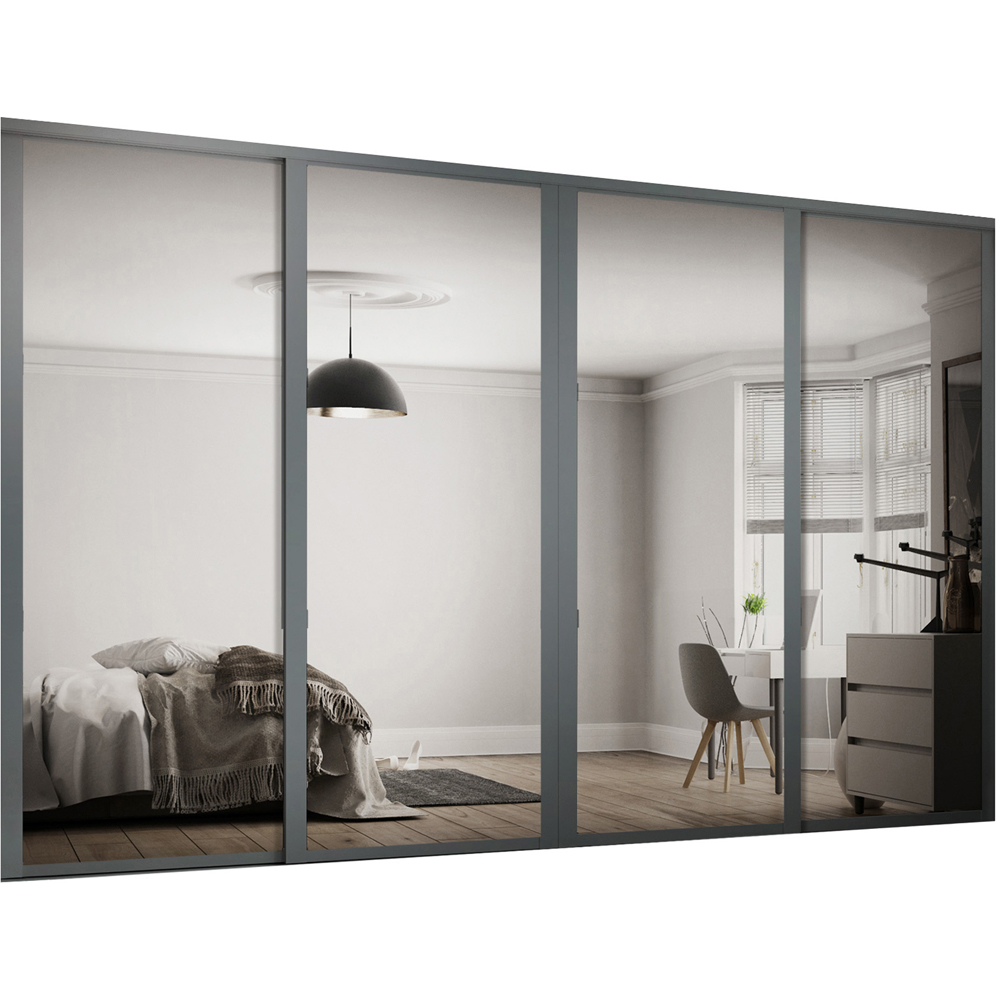 Spacepro Shaker 4 Door Graphite Frame Mirror Sliding Wardrobe Kit 2898mm