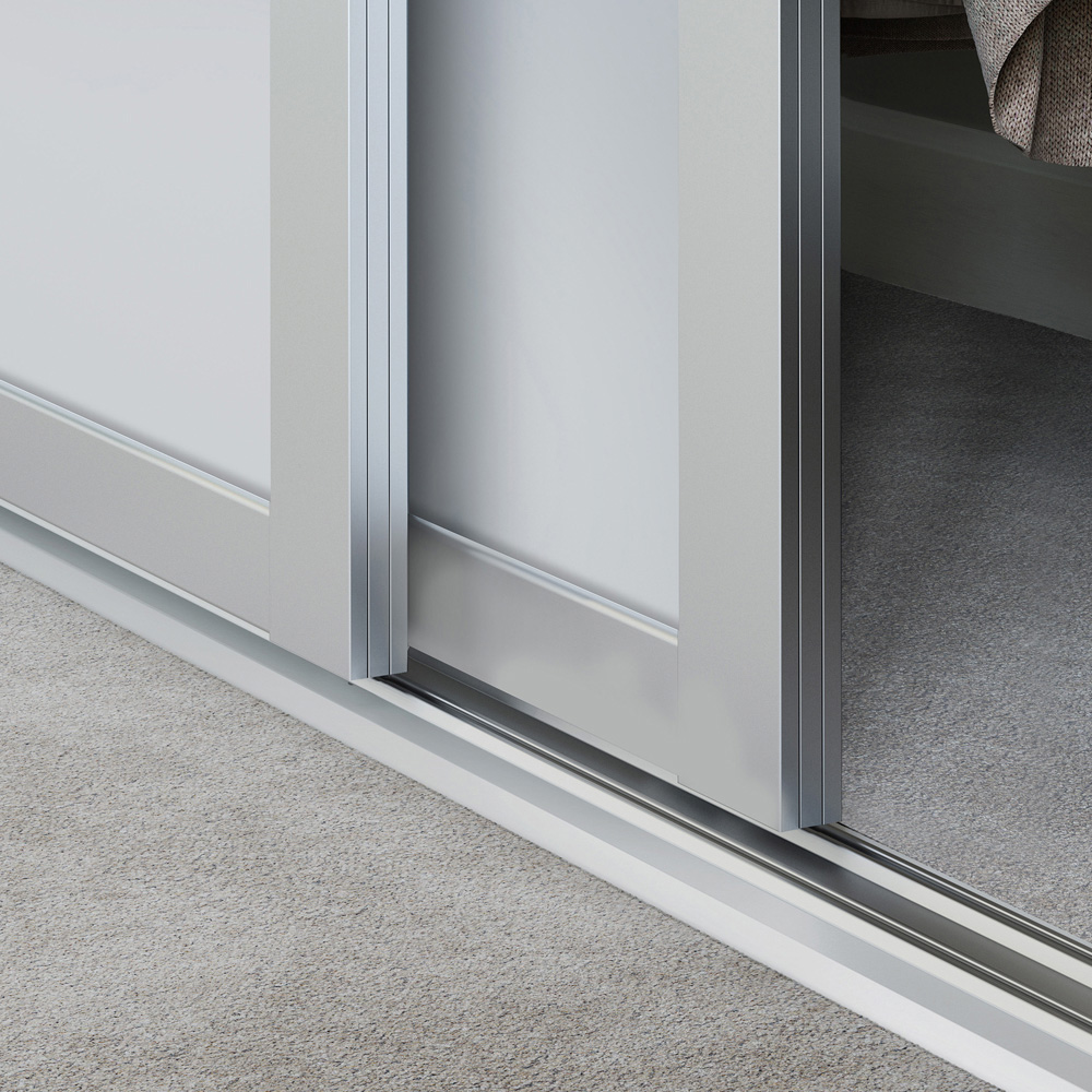 The Shaker range offers you the flexibility to create either a contemporary or more traditional look in either a mirror or panel combination. Two guides are attached to the top of the door and two wheels to the bottom which allows the door to slide along the track set. These doors fit an opening height of 2260mm.