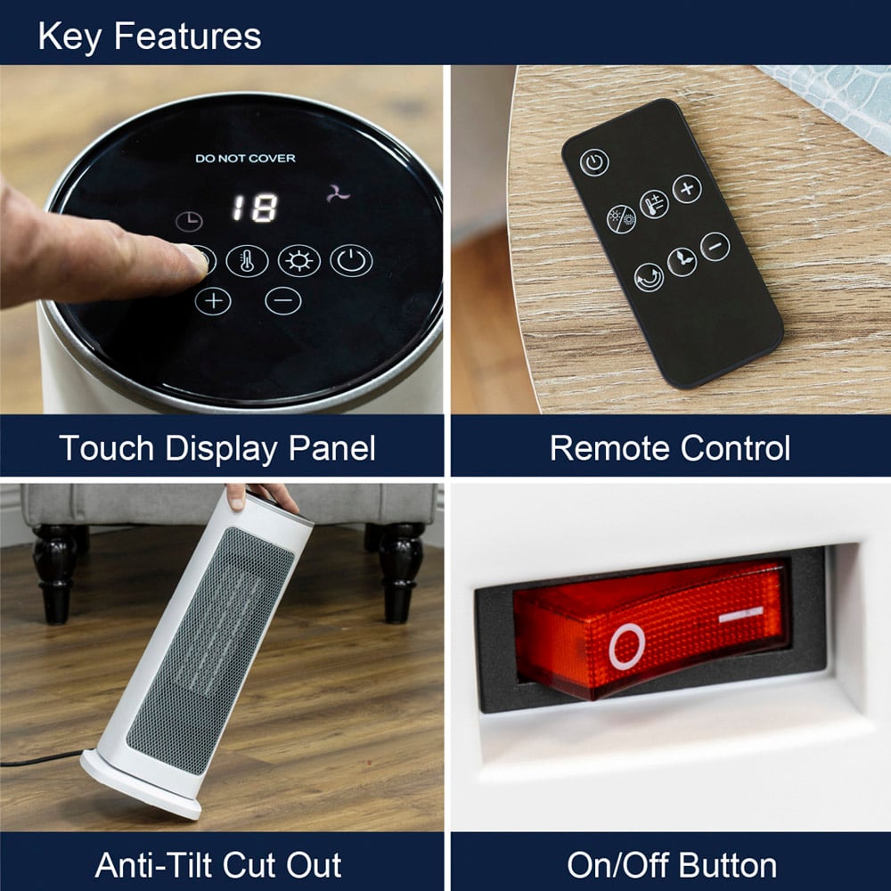 Enjoy year-round comfort with the Spear & Jackson PTC Ceramic Fan Heater. This versatile appliance delivers both heating and cooling, circulating air efficiently throughout your space thanks to its oscillating function. Advanced PTC ceramic heating elements provide quick, safe warmth in just three seconds—perfect for those chilly winter evenings. Conveniently set the 12-hour timer using the intuitive touch controls on the unit or the included remote, ensuring a consistent flow of air all night long. By focusing heat on the occupied room, this energy-efficient heater helps save money compared to heating an entire house. Easily move the heater between rooms using its integrated carry handles. With a temperature range of 15°C to 40°C, maintain your ideal temperature all year round.