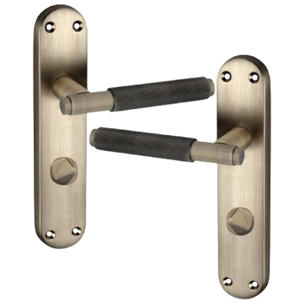Spira Brass Connaught 2 Pack Matt Antique Knurled Lever Door Handle with Privacy Backplate
