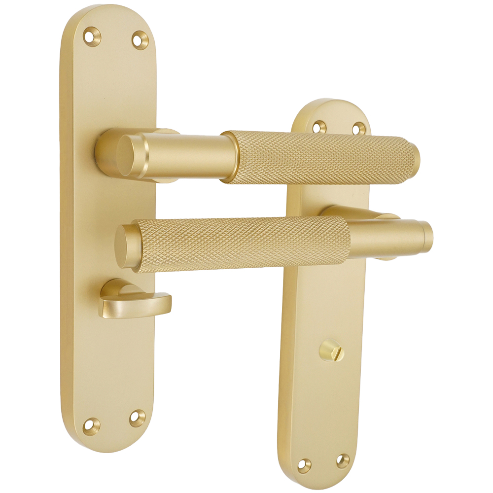 Spira Brass Connaught 2 Pack Satin Brass Knurled Lever Door Handle with Privacy Backplate