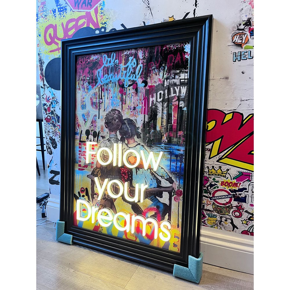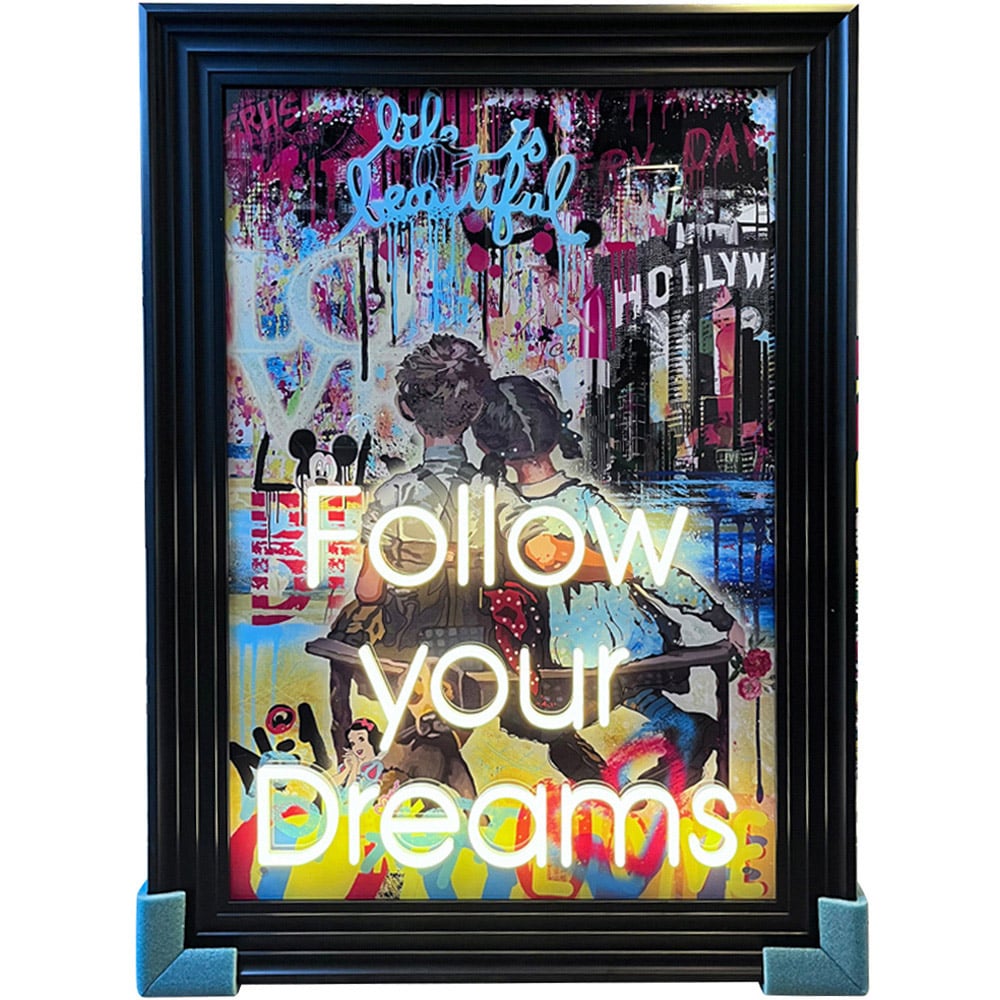 Infuse your surroundings with a modern statement piece that inspires and illuminates. This LED Neon Wall Art, framed in sleek black, adds a touch of heartfelt artistry to any space. Featuring a distinctive graffiti-style acrylic background, it’s a versatile addition to your home or office, and makes a memorable gift. Designed for effortless set-up, it includes pre-drilled holes and all necessary mounting hardware. The energy-efficient LED lights provide a long-lasting, radiant glow, making it an environmentally conscious lighting choice.