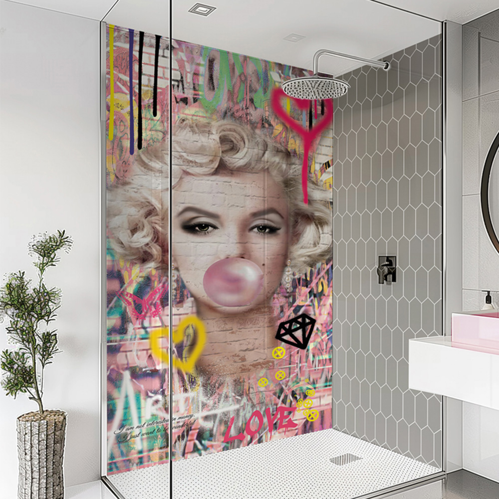 Upgrade your shower with the Marilyn Bubblegum SPLASHBAX shower panel – a stylish and durable alternative to glass. This cost-effective acrylic panel, available in 3mm thickness, adds a vibrant splash of colour, complementing both modern and traditional bathroom designs. Its sleek finish and intricate design with a unique colour scheme elevate your bathroom's aesthetic. Easy to install and maintain, it's a fantastic choice for any homeowner.