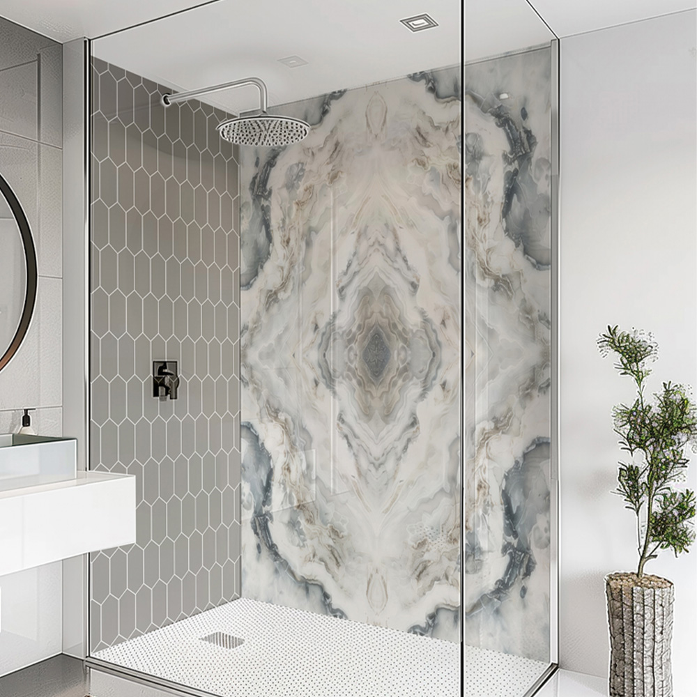 Upgrade your shower with our Persian Azul Teal shower panel – the perfect blend of modern style and lasting quality. Made from high-quality acrylic, this panel offers a sleek, durable alternative to tile, bringing a touch of elegance to any bathroom. Its intricate design and unique colour scheme add a premium feel, complementing both traditional and contemporary styles. Available in a 3mm thickness, this easy-to-fit and maintain panel is a fantastic choice for any bathroom renovation.