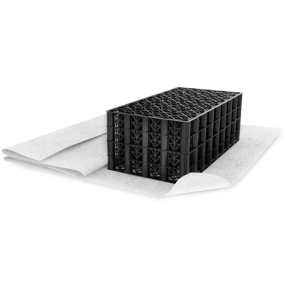 Conquer waterlogged ground with the Spudulica Soakaway Kit. This six-pack solution provides everything needed to effectively manage excess water. Each kit features a Polystorm PSM1A soakaway crate, expertly designed to facilitate ground absorption. Installation is straightforward thanks to the included cut-to-size 100gsm non-woven geotextile membrane and adhesive tape. Each robust crate, measuring 1000mm x 500mm x 400mm (and weighing approximately 9kg), offers a substantial 190L capacity. Manufactured from recycled materials, these crates boast a 3D flow design with integrated inlets and outlets, a compressive strength of 61 tonnes per cubic metre, and a remarkable 95% void ratio. Engineered for longevity, with a 60-year creep-limited life expectancy and BBA approval, this kit ensures long-term performance. The geotextile membrane optimises crate function, preventing clogging. The kit also includes sturdy 10cm x 50cm EcoGrid tape. Pack contents: Polystorm PSM1A Crate, Spudulica 100gsm Geotextile Membrane and Joining Tape.