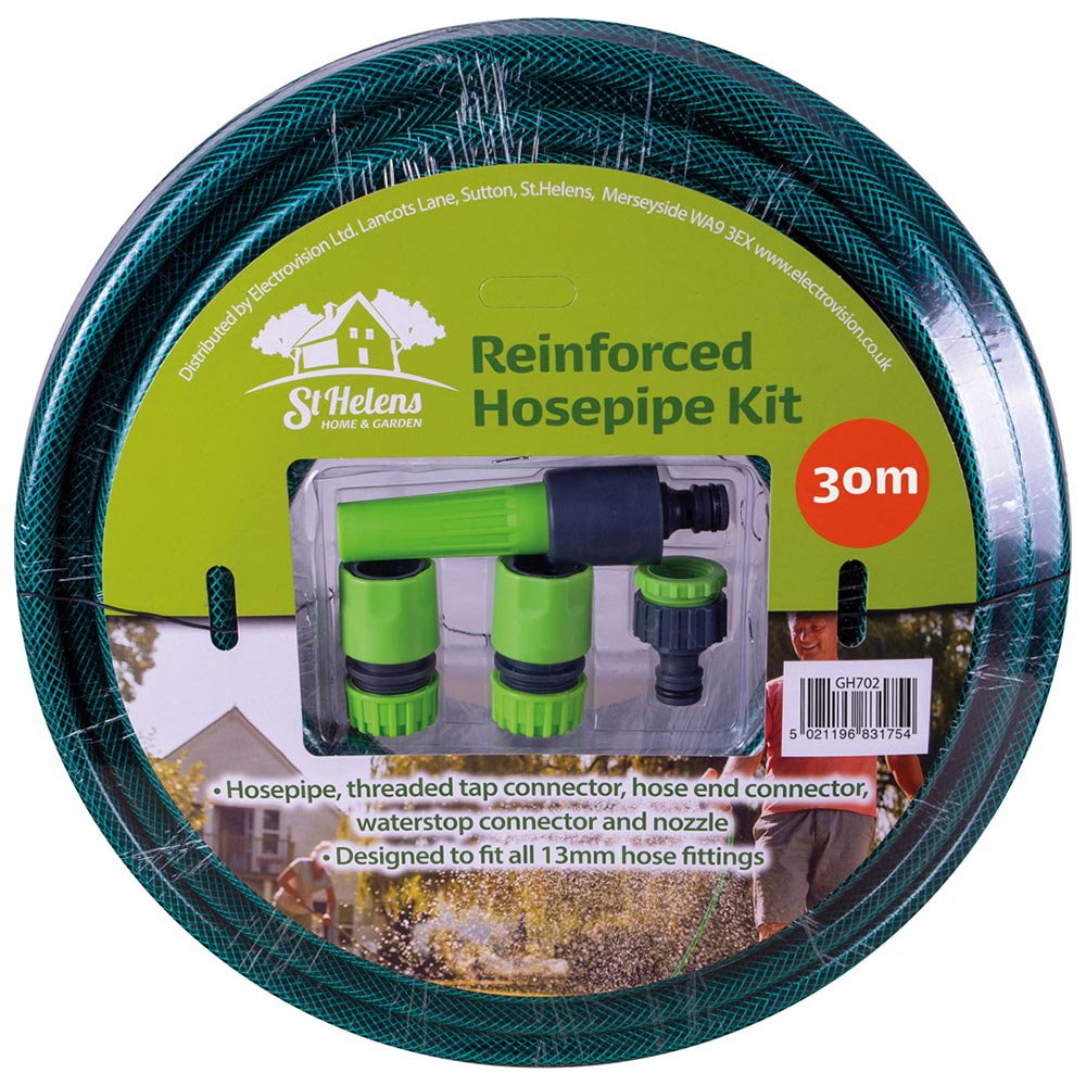 Water your garden, wash your car, or bathe your pets with ease using this St Helens Hosepipe Kit. This comprehensive kit contains everything you need: a durable 30m reinforced hosepipe compatible with all 13mm fittings, a versatile indoor/outdoor tap connector, a hose end connector, a water stop connector, and a nozzle sprayer. Its reinforced design ensures flexibility and strength, making it the perfect solution for any watering task. Various hose lengths are available to suit your garden',s size.