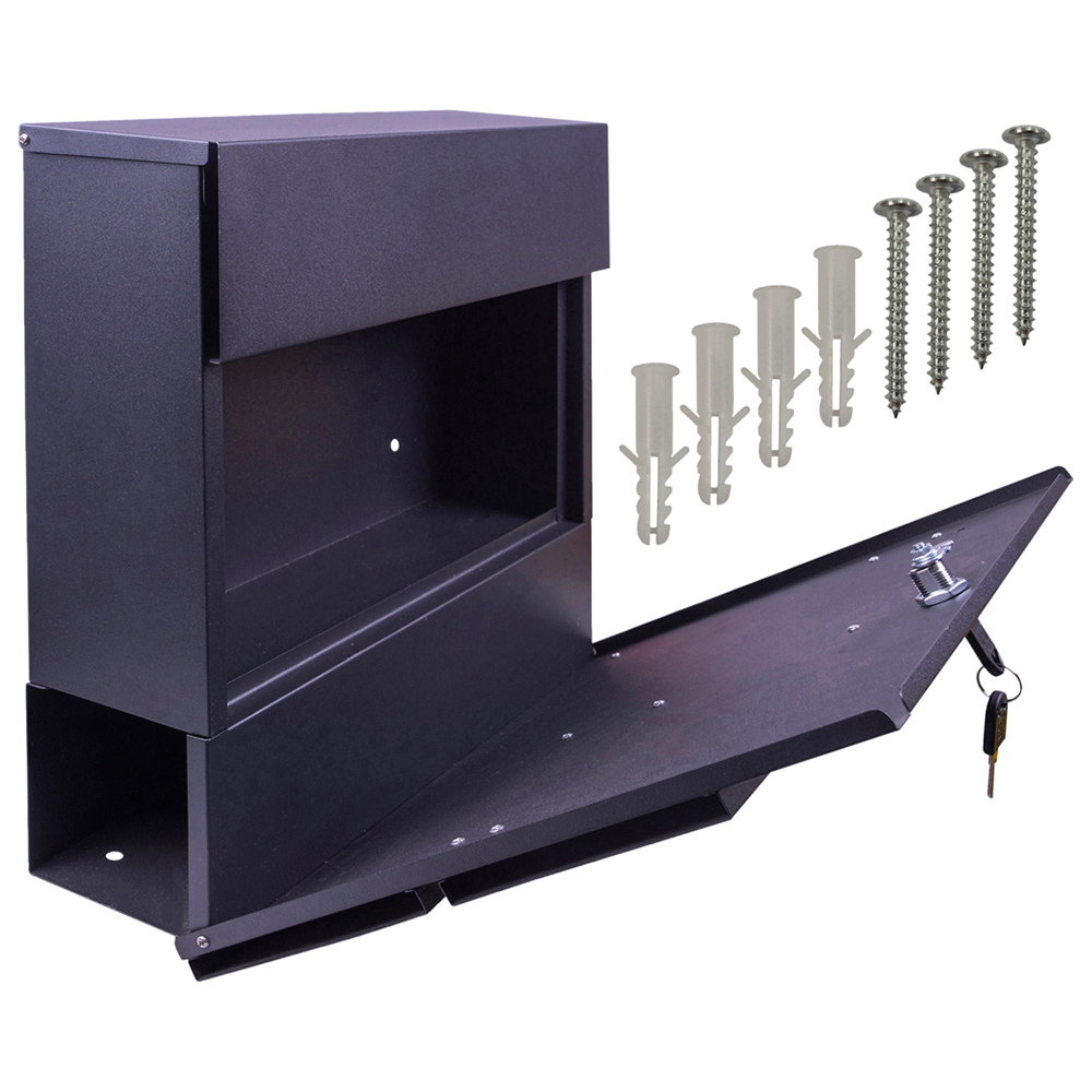 This large-capacity wall-mounted letterbox is a stylish and secure solution for your mail. Accommodating everything from postcards to packages, it's built to handle all your correspondence. The secure top opening and flap help keep your mail dry, while the convenient key access lets you retrieve your mail whenever you need it. Made from durable powder-coated galvanised steel, this letterbox is built to withstand the elements. Four pre-drilled holes and included screws and rawl plugs make installation a breeze. Supplied with two keys, it's a practical and attractive addition to your home. It will accommodate large and small letters, newspapers, catalogues, and magazines.