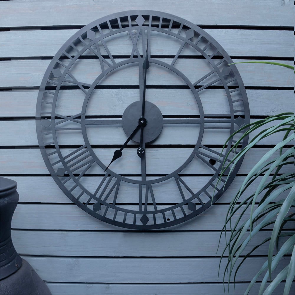 St Helens Black Open Face Design Non Ticking Garden Clock 60cm