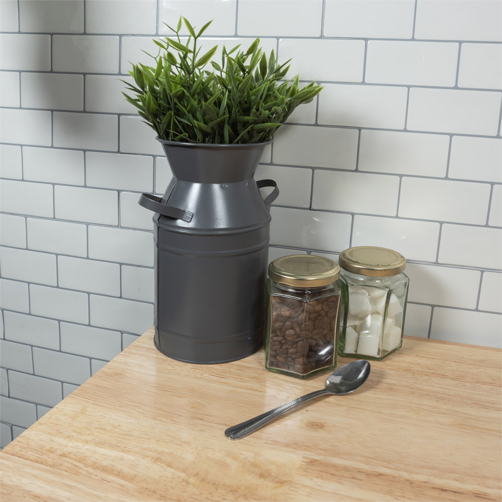 St Helens Grey Vintage Metal Milk Churn Planter 14cm