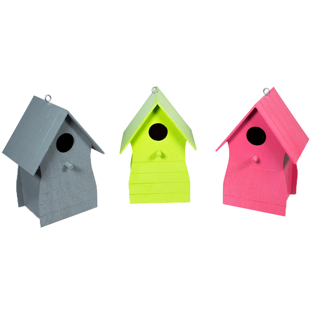 This delightful set of three birdhouses, each a different colour, will bring a splash of joy to your garden. Designed to attract a range of garden birds including blue tits, coal tits, marsh tits, great tits, and tree sparrows, each house features a 30mm entrance hole. Securely mount them on a wall using the keyhole slot on the back or hang them from their roof.