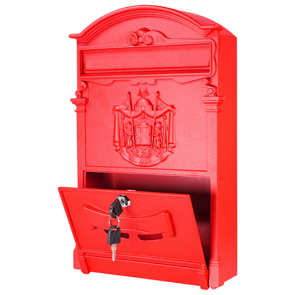 This robust, retro-style letterbox boasts a generous capacity, perfect for all your mail, newspapers, and magazines. A classic design complements any home's aesthetic. Securely lock your mail away with the included keys, accessed via the top opening. A protective flap safeguards your mail from the elements. A convenient address slot is included. Wall-mount installation is effortless thanks to the pre-drilled holes and included screws and rawlplugs. Constructed from durable powder-coated galvanised steel, this letterbox is built to last. Two keys are supplied.