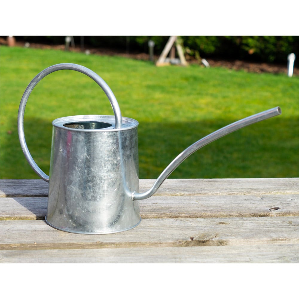 St Helens Silver Metal Watering Can with Long and Narrow Spout 1.75L