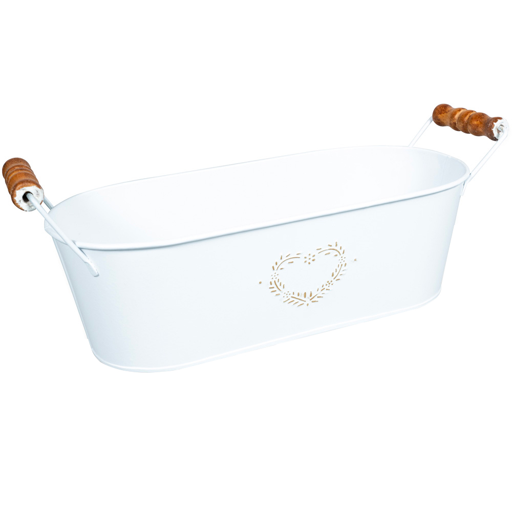 This elegant white metal planter will beautifully complement your home or garden. Crafted from strong, durable metal, it provides the perfect environment for your plants to flourish. Conveniently sized handles ensure effortless movement, allowing for easy rearrangement of your plant displays. Ideal for flowers, herbs, and small shrubs, it',s equally stunning as a dining table centrepiece or a decorative accent on a mantelpiece or shelf. A sophisticated and practical choice for gardeners of all levels. Dimensions: H10 x W11 x D30cm.