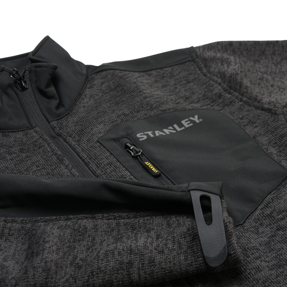 Get reliable warmth and comfort with the Stanley Arizona Grey Zip Through Knitted Fleece Medium. Crafted from heavyweight 320 gsm material, it's perfect for layering, making it a great choice for working outdoors on-site during cooler months. Designed with stretch panels on the upper back, arms, and sides, it provides a flexible fit that moves with you. The fleece also features multiple zipped pockets, including two hand pockets and a chest pocket, ideal for keeping essentials secure and within reach.