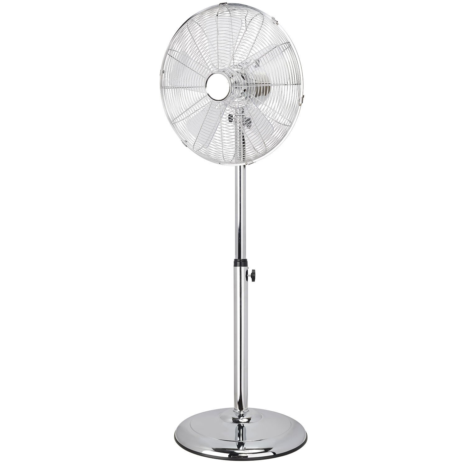 The Status Chrome Pedestal Fan, a 48-inch model with a sleek chrome finish, provides cooling comfort on warm days. Its three speed settings and oscillation function offer customisable airflow, allowing you to direct cool air precisely where you need it for optimal comfort in any room – bedroom, living room, or office.