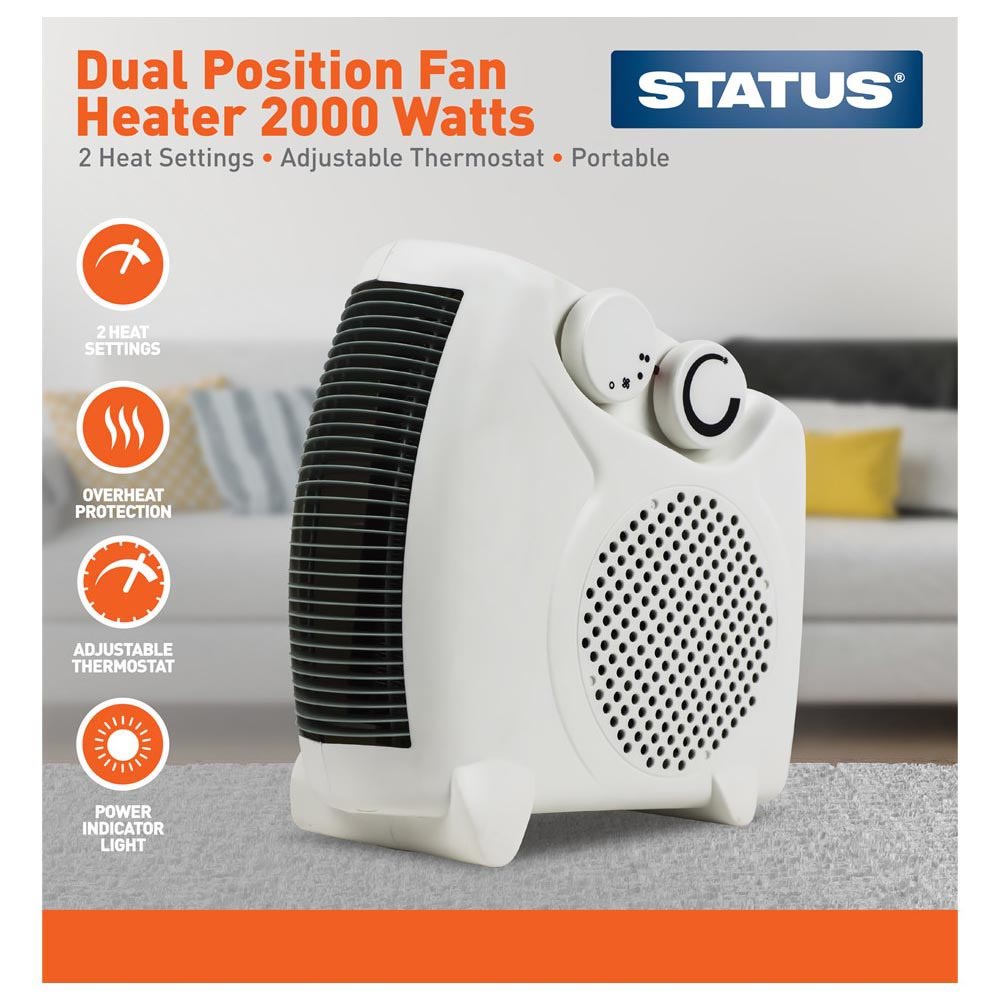 Stay warm and cosy with the Status Dual Position Fan Heater, crafted to maintain a comfortable atmosphere during the chilly months. This efficient heater boasts overheat protection for safe operation and a versatile design that allows positioning either horizontally or vertically to suit your space. It includes a safety tip-over switch to prevent accidents and a power indicator light to show when it’s in use. The built-in carry handle makes it easy to transport this sleek radiator from room to room, while the adjustable thermostat ensures you achieve your ideal temperature. Packaged in a glossy retail box, this fan heater is your perfect companion for winter warmth.