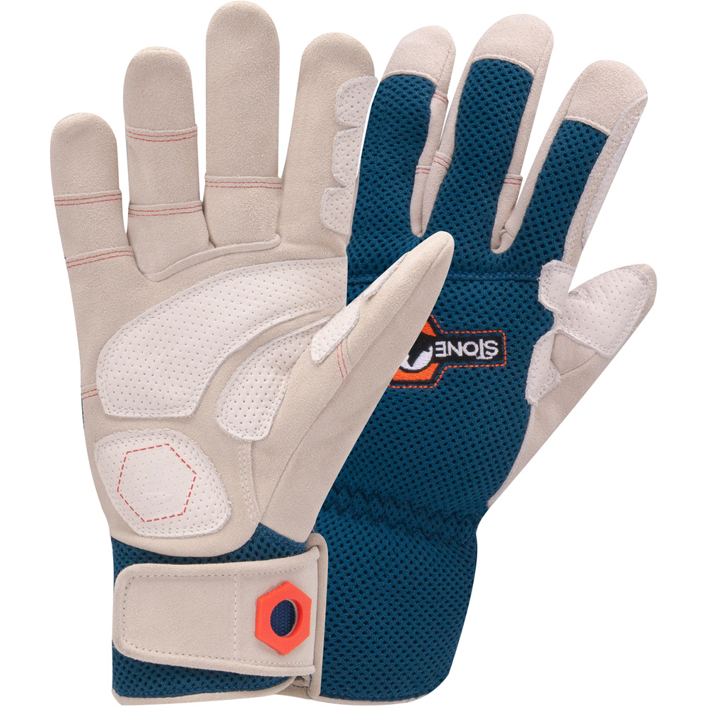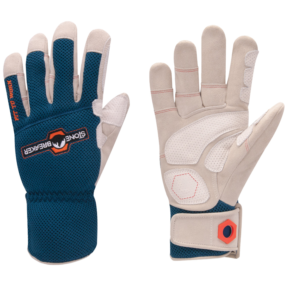 StoneBreaker Blue Landscape Pro Work Gloves are crafted to conform to your hands from the moment you put them on. There’s no need to break these gloves in; they're ready to work when you are, thanks to Fit to Work technology. The robust cowhide palm, complete with reinforcing leather patches, delivers extra protection and comfort exactly where your hands require it. A breathable shell surrounds the leather palm, complemented by an extended cuff with a double wide leather closure, ensuring a secure fit for even the most demanding landscaping jobs. These gloves offer unmatched durability and comfort for even the toughest landscaping tasks. Size: Large.
