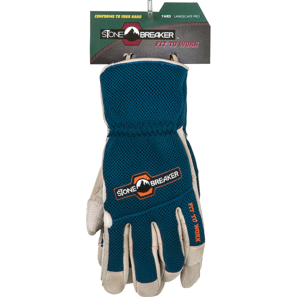 StoneBreaker Landscape Pro Work Gloves in blue are designed to mould to your hand from the get-go. There’s no breaking these gloves in, and you won’t need to take them off. A hardwearing cowhide palm, complete with reinforced leather patches, delivers protection and comfort where your hands require it most. A breathable shell surrounds the leather palm, with extended cuffs and a double-wide leather closure to ensure a secure fit. Ideal for even the toughest landscaping tasks. Size: Extra Large.