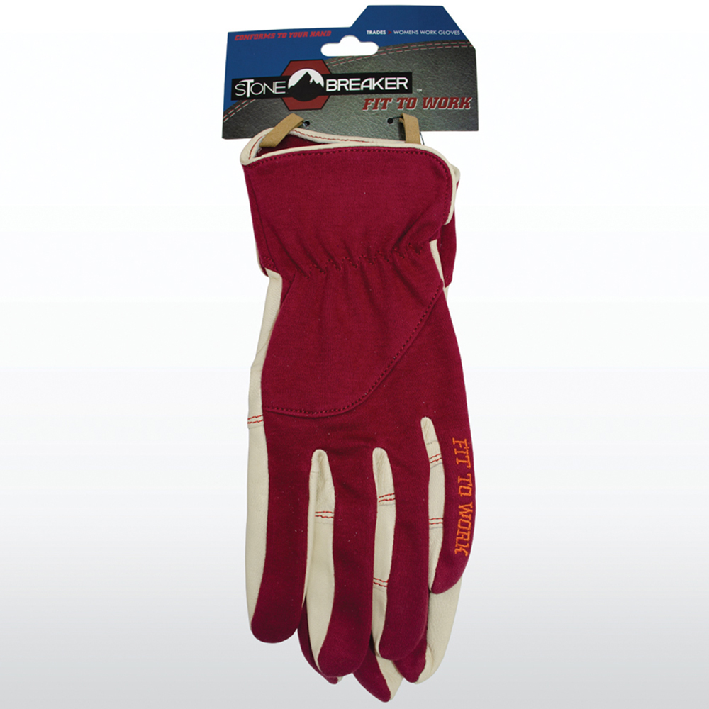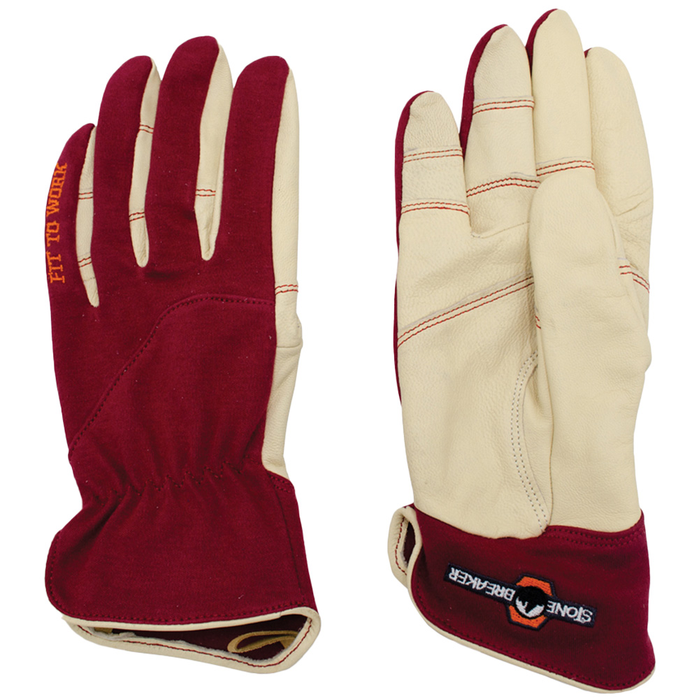 Discover the ideal combination of elegance and practicality with StoneBreaker Burgundy Women's Work Gloves. Constructed with a premium goatskin palm and resilient synthetic backing, these small-sized gloves provide exceptional dexterity and protection. The innovative Fit to Work design and breathable fabric guarantee comfort in any climate, whilst reinforced double-stitched seams and extended cuffs deliver enhanced durability and added protection.