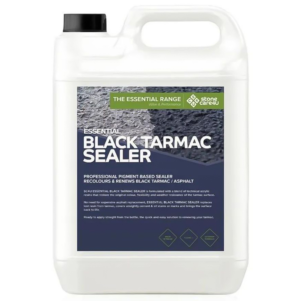 Revitalize your tarmac with StoneCare4U Essential Black Tarmac Sealer, a 5L solution for restoring colour, flexibility, and weather resistance. This professional-grade, pigment-based sealer, formulated with acrylic resins, recolours black tarmac and asphalt, eliminating the need for costly replacements. It effectively covers cement and oil stains, breathing new life into worn surfaces. Ready to use straight from the bottle, it's the quick and easy way to renew your tarmac. Preparation:** Thoroughly clean the surface, removing loose stones. If algae or other green growth is present, pre-treat with a remover 4-5 days prior. Favourable weather conditions are essential for optimal application. Application:** Wear appropriate safety gear (gloves, mask, eye protection, clothing). The ideal application temperature is 12-22°C. Allow 3-4 dry days after cleaning. Use a brush or roller for edges and smaller areas, a floor roller for larger surfaces. Apply generously and evenly. Do not dilute. Let dry for 45-60 minutes, then repeat application in the opposite direction for even colour. Allow 24 hours before driving, light foot traffic is possible after 1-2 hours. Coverage:** Up to 5m² per litre per coat (25m² per 5L). Do not dilute. Avoid application if rain is forecast within 4 hours. Test in an inconspicuous area first. Protect sensitive surfaces with masking material.
