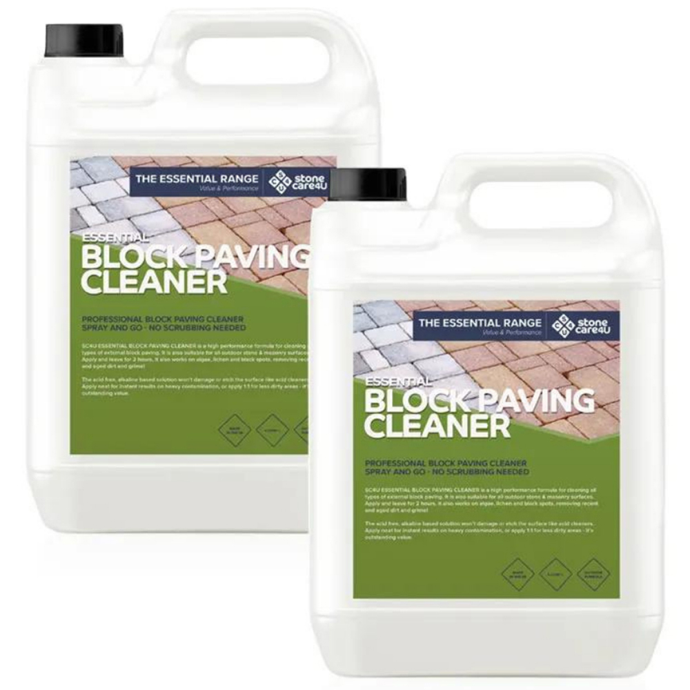 Transform your outdoor stone surfaces with StoneCare4U Essential Block Paving Cleaner. This high-performance cleaner effortlessly removes dirt, grime, algae, lichen, and black spots from all types of external block paving, pavers, pathways, driveways, patios, and natural and engineered stone. Its acid-free, alkaline formula won't etch or damage surfaces like harsh acid cleaners. For best results, pre-clean loose debris and wear appropriate safety gear (gloves, eyewear, mask, clothing). Apply neat or diluted 1:1 with water—always test a small area first to determine the ideal dilution and dwell time. Apply using a pump sprayer, watering can, or directly from the container, ensuring the surface remains wet for at least one hour, misting with additional cleaner or water if needed. Gently brush stubborn areas. After a minimum two-hour dwell time (extend to four hours or overnight for heavy soiling or lichen), neutralize with clean water before power washing for a pristine finish. Avoid contact with vegetation, rinse thoroughly if necessary. Note: This cleaner contains a chlorine-type agent and may stain fabrics and tarmac, test in an inconspicuous area beforehand. Some slight lightening of surfaces may occur. Coverage: Up to 50m² per 5L (1:1 dilution). Coverage varies with surface contamination. 5L. Pack of two.
