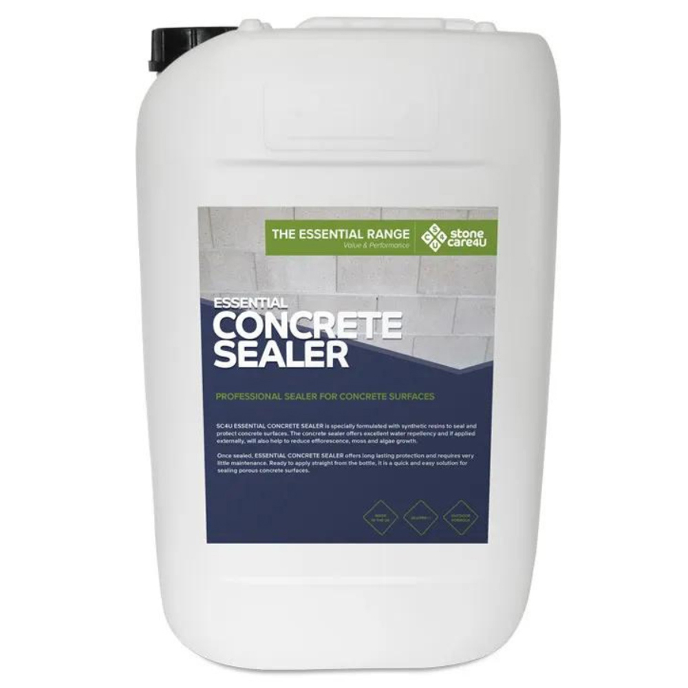 Protect your concrete surfaces for years to come with StoneCare4U Essential Concrete Sealer. This expertly formulated sealer, utilizing advanced synthetic resins, delivers superior water repellency and long-lasting protection. Ideal for exterior use, it effectively reduces efflorescence, algae, and green growth, minimizing maintenance needs. This ready-to-use solution penetrates porous concrete, significantly reducing water absorption without blocking pores or capillaries, while also inhibiting organic staining. The sealer allows the concrete to "breathe," facilitating moisture vapor transfer. For optimal results, ensure the surface is clean and dry before application. Apply two "wet-on-wet" coats using a low-pressure sprayer, roller, natural fibre brush, or sponge between 12°C and 23°C. Allow 45-60 minutes for surface drying. In case of rain, immediately cover treated areas and ensure they remain dry for six hours. A test application in an inconspicuous area is recommended before full application to assess suitability and potential changes in appearance. Protect unsealed surfaces with masking material. Clean sealed areas with a mild, pH-neutral cleaner. Avoid harsh or abrasive cleaners. Coverage is 4 to 10m² per litre per coat, depending on surface porosity. Available in a 25L size. Always wear appropriate safety gear, including gloves, eye protection, a face mask, and protective clothing.