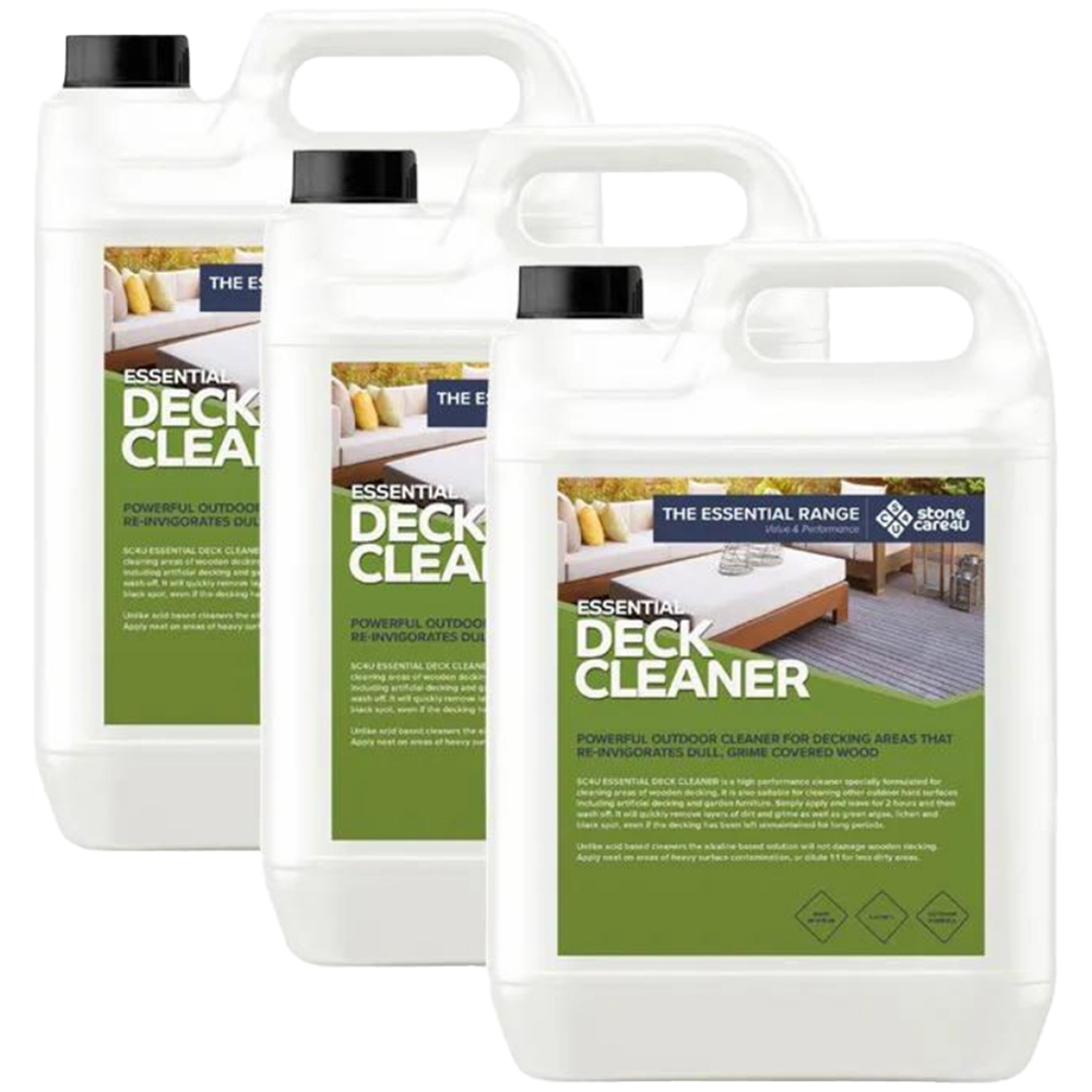 Transform your tired decking with StoneCare4U Essential Deck Cleaner. This powerful cleaner tackles dirt, grime, algae, lichen, and black spots – even on neglected decking. Simply apply, leave for two hours (or up to four for stubborn stains), and power wash away. It',s alkaline-based, so it',s kind to wood, unlike harsh acid cleaners.