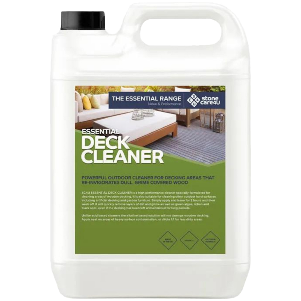 Transform your tired decking with StoneCare4U Essential Deck Cleaner. This powerful cleaner is perfect for bringing wooden decking back to life, tackling years of ingrained dirt and grime. It also works wonders on artificial decking and garden furniture.