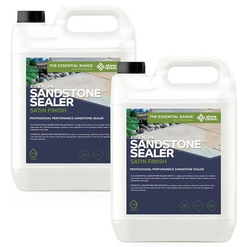 Get professional results with StoneCare4U Essential Satin Finish Sandstone Sealer (5L). This durable, quick-drying formula intensifies natural colours and protects against stains on sandstone, slate, and limestone. Before you begin, clear away loose debris. Safety first! Wear gloves, eye protection, a face mask, and suitable clothing. Let the surface dry completely for at least 72 hours in clear, dry weather, ideally between 15-23°C. Apply thinly and evenly using a low-pressure sprayer, microfibre mop, brush, or soft cloth. Avoid puddling and application marks. Don't dilute! Allow 45-60 minutes drying time between coats. Apply the second coat in the opposite direction for a consistent finish. For a glossier look, add more coats. Test in an inconspicuous area first, as the sealer may alter the colour. Protect unsealed areas with masking material. Note: Not suitable for Kandla Grey (mid and light-grey) sandstone. Pack of 2.