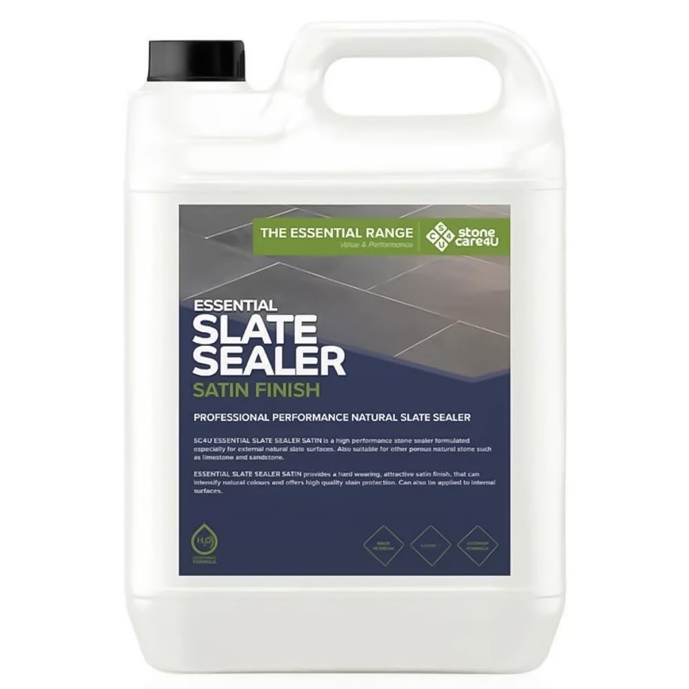 Give your natural slate a durable, attractive satin finish with StoneCare4U Essential Satin Finish Slate Sealer (5L). This fast-drying formula creates a durable, stain-resistant coating, enhancing the natural stone colours. It's perfect for both indoor and outdoor use on natural slate, limestone, and sandstone. Before you begin, clear away any loose debris. Safety first – wear gloves, eye protection, a mask, and appropriate clothing. Ensure the surface is completely dry (72 hours minimum in clear, dry weather) and the temperature is between 15-23°C. Apply thinly and evenly using a low-pressure sprayer, microfibre mop, brush, or soft cloth. Avoid puddling and application marks. Don't dilute! Allow 45-60 minutes drying time between coats (apply the second coat in the opposite direction for a consistent finish). Additional coats may be needed for a higher gloss. Important: This sealer may alter the colour of some surfaces, test it in an inconspicuous area first. Protect unsealed surfaces with masking material. Note: Not suitable for Kandla Grey (mid and light grey) sandstone.