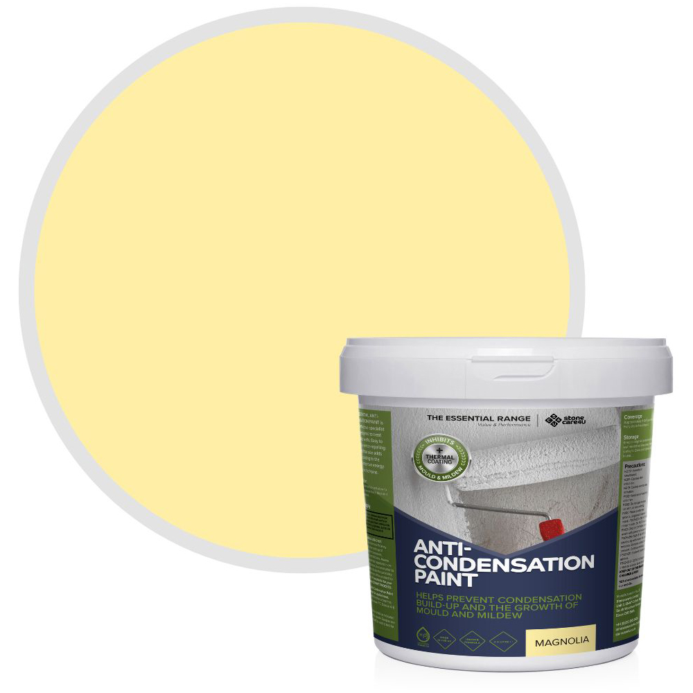 Transform your walls and ceilings with StoneCare4U Essential Walls & Ceilings Anti-Condensation Paint. This heat-modified acrylic copolymer emulsion, in a classic Magnolia shade, delivers a smooth finish perfect for creating a fresh, clean space. Ideal for bathrooms, kitchens, bedrooms, and more, this paint significantly reduces condensation buildup and prevents mould growth, especially beneficial in areas with poor insulation or on cold, external-facing walls. For best results, apply at least two coats (more may be needed over dark colours) to a clean, dry surface free from contaminants, avoiding temperatures below 10°C and high humidity. Use a brush or roller. While compatible with matt emulsion finishes, proceed with caution when painting over some eggshell, silk, and vinyl paints. Available in a convenient 2.5L tin.