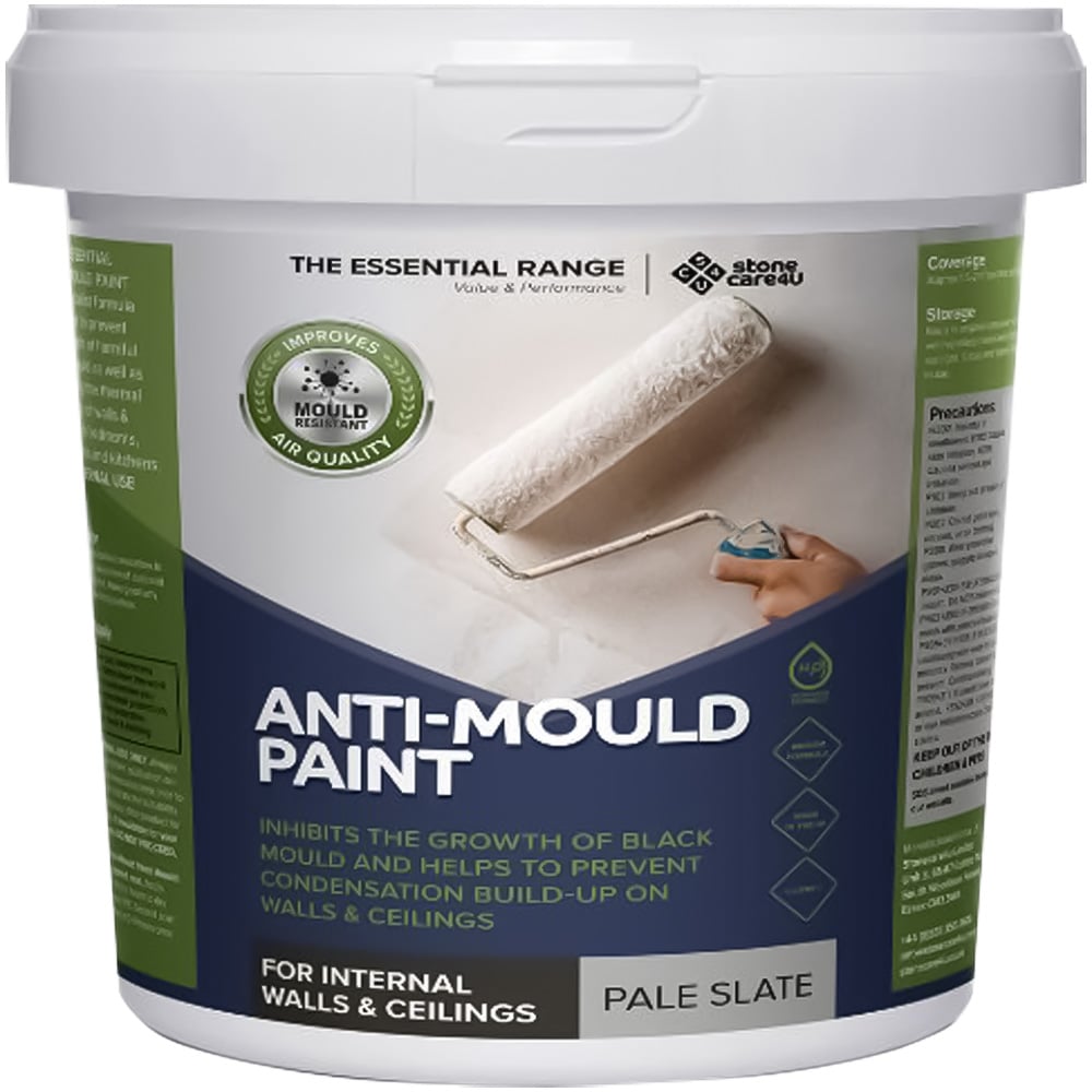 Transform your walls and ceilings with StoneCare4U Essential Walls & Ceilings Pale Slate Matt Anti-Mould Paint. This heat-amended acrylic copolymer emulsion, perfect for interior use on walls and ceilings, combats black spot mould build-up, making it ideal for kitchens, bathrooms, and ceilings, and for use on internal surfaces of cold-facing walls or walls with low insulation levels. Its unique formula, incorporating tiny cenospheres ("beads"), raises surface temperature to reduce condensation and inhibit mould regrowth. An active fungicide further prevents mould accumulation, protecting against the health concerns and unsightly appearance mould can cause, especially beneficial for asthma sufferers and those with respiratory sensitivities. Achieve a flawless finish with at least two coats, applied with a brush or roller (additional coats may be needed over dark colours). For optimal results, maintain air and surface temperatures above 10°C and avoid high humidity. This 5L tin provides approximately 4-6m² coverage per litre per coat. Allow one to two hours drying time between coats, and two to four hours before recoating.