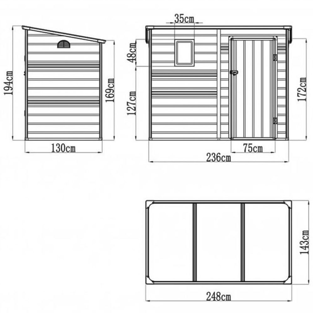 Keep your garden tools organised and protected with the Lotus Oxonia Pent Plastic Shed. This robust dark grey shed boasts a durable pent roof design and a sturdy plastic floor for reliable storage. Access your equipment easily via the single door, secured with a padlock for peace of mind. Natural light and ventilation are ensured by a small front window and side vent. This low-maintenance, weatherproof shed provides a practical storage solution. Dimensions: 8ft x 5ft.