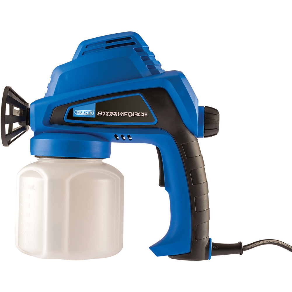 The Storm Force 80W Spray Gun: A powerful and versatile addition to any workshop. This dependable spray gun boasts adjustable flow control for precise application and includes an extension nozzle for hard-to-reach areas. Two colour-coded nozzles (0.6mm and 0.8mm) are provided, ensuring suitability for various projects. A convenient 700ml pot capacity minimizes refills, while the included 2m (approx.) cable and approved plug offer ease of use. Delivering 250ml per minute with an 80-watt motor, this spray gun offers efficient and reliable performance.