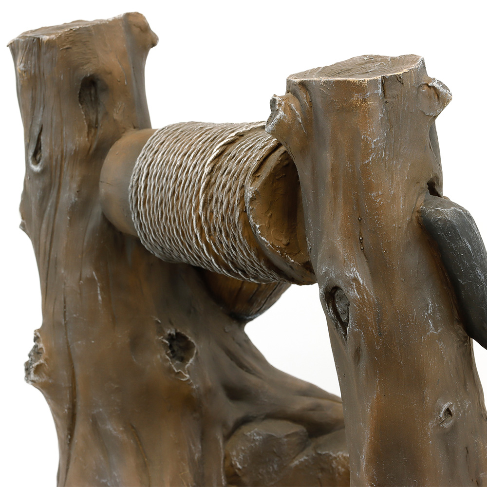 Create a charming and rustic atmosphere in your outdoor space with this solar-powered water feature. Its elegant design, featuring a brick wall and tree trunk, adds a touch of character to patios, decking, garden areas, or flowerbeds. Powered by a 3.7V-2000mAH lithium battery, this environmentally friendly water feature uses only solar energy to operate its DC-powered pump, complete with a 5m cable connecting the solar panel. Enjoy continuous operation even on cloudy days or at night thanks to its on-demand backup battery power. Constructed from durable, weatherproof resin, this water feature measures H64 x W43 x L53cm and weighs 11kg.