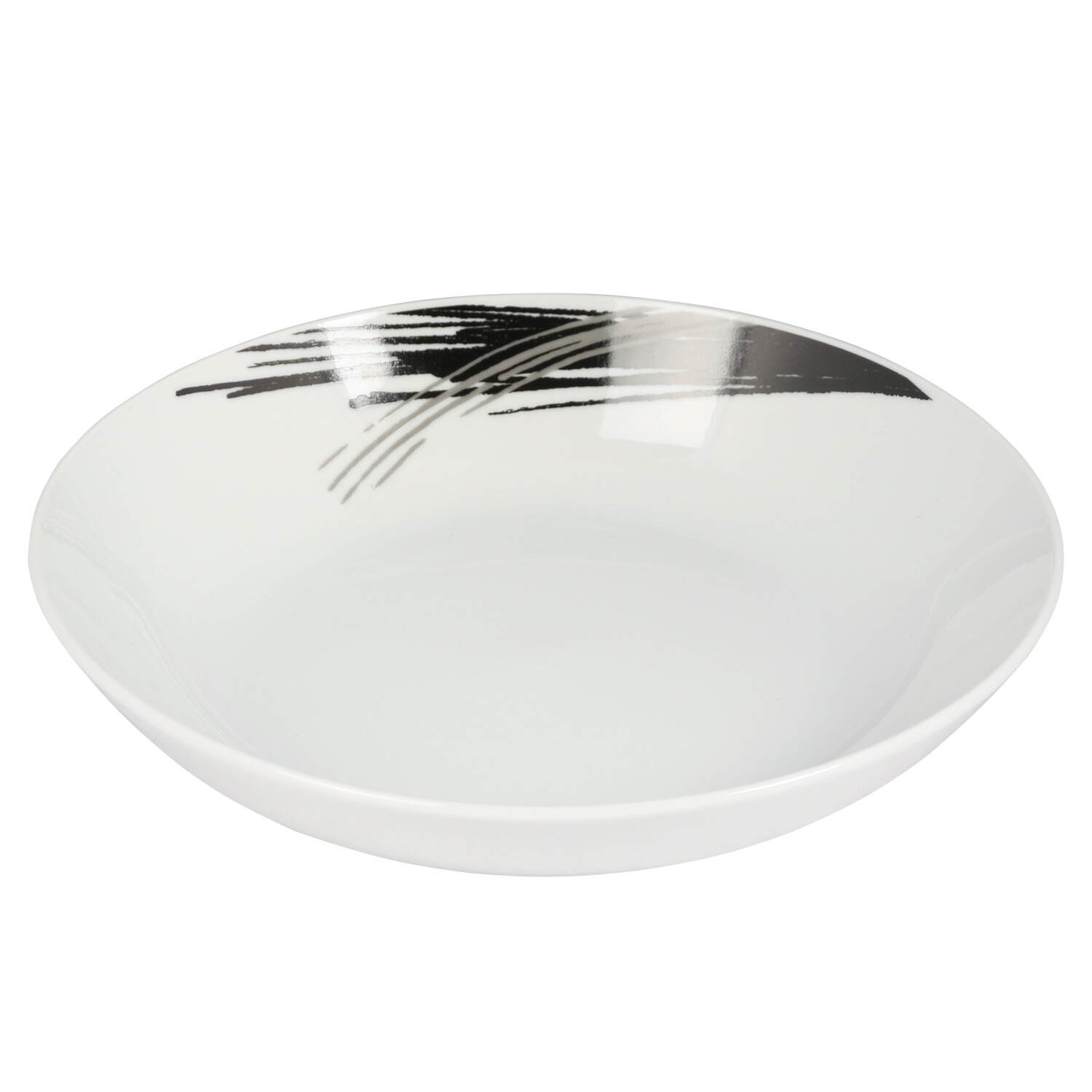 Elevate your dining experience with the Stria Coupe Pasta Bowl. Its contemporary abstract design, featuring a dynamic streak of black and grey, makes a stylish statement. Perfect for pasta and other dishes, this microwave and dishwasher-safe bowl offers both beauty and practicality. It will coordinate beautifully in your dining space and with other items in the Stria collection.