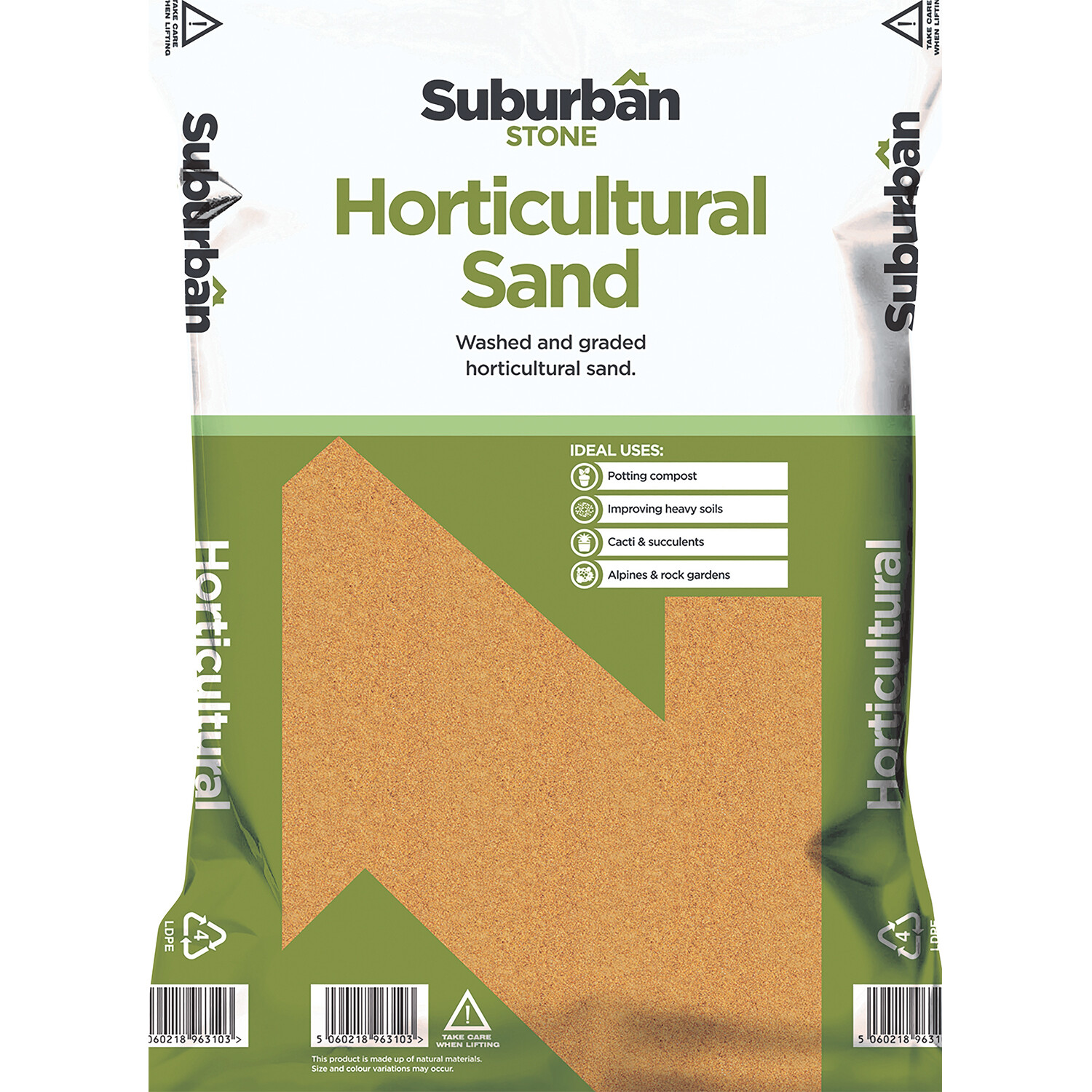 This washed and graded coarse granular Suburban Stone Horticultural Sand is great for adding to composts. Perfect for optimising growth within seeds and cuttings, as well as improving lawn drainage, this sand is an ideal tool for any avid gardener. Also, it is ideal for cacti and succulents, alpines and rock gardens etc. Size: 20kg.