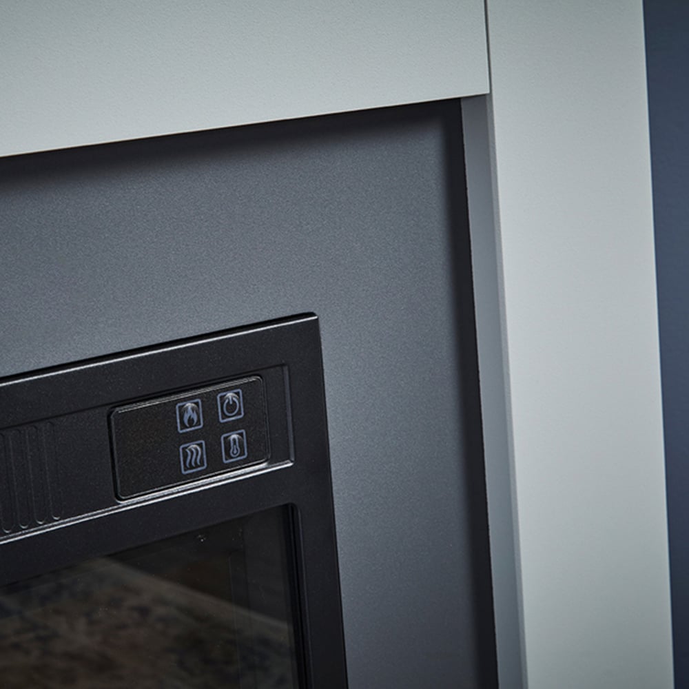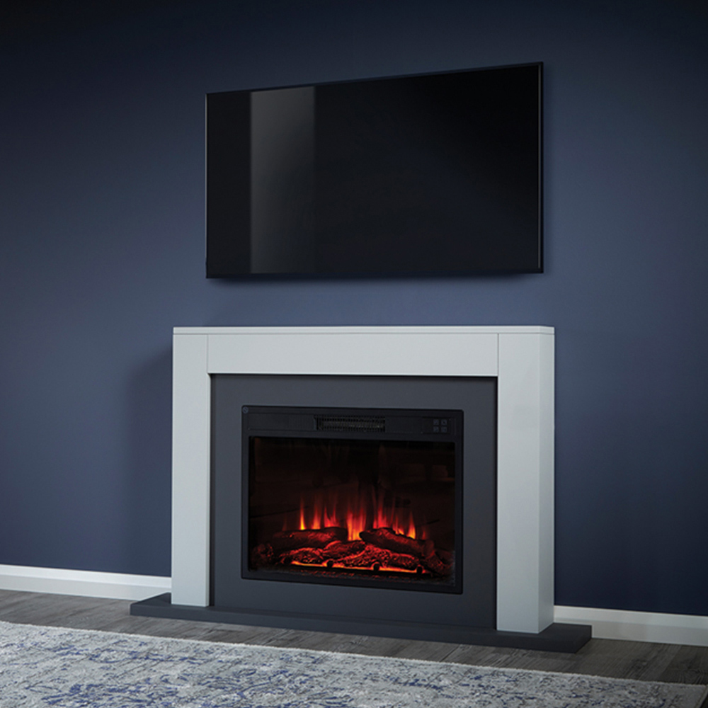 Bring contemporary charm to your home with the Suncrest Marlow Textured Grey Electric Suite. This picture frame electric fireplace is finished in textured light grey with a contrasting dark grey back panel and hearth. The energy-efficient LED flame effect, with three settings, creates a realistic flickering glow over the log bed. Enjoy the ambience without the heat, thanks to the flame effect-only setting. The suite comes with a smart remote control, producing up to 2kW of heat, and features the latest EcoDesign energy-saving technology, including a 7-day programmable timer, draught detection, and adaptive start operation. This flat-to-wall fireplace requires no chimney breast, comes fully assembled, and is backed by a 1-year warranty.