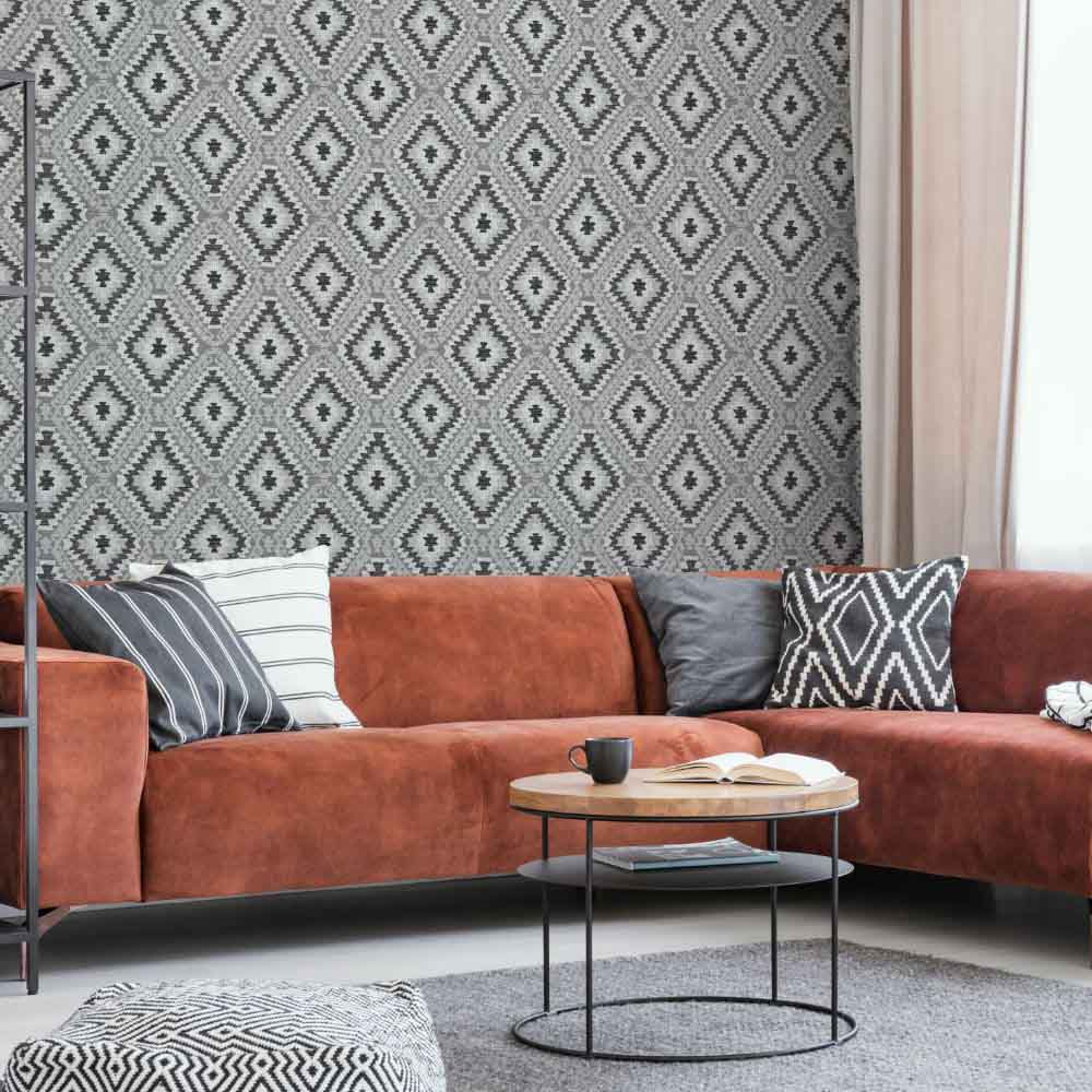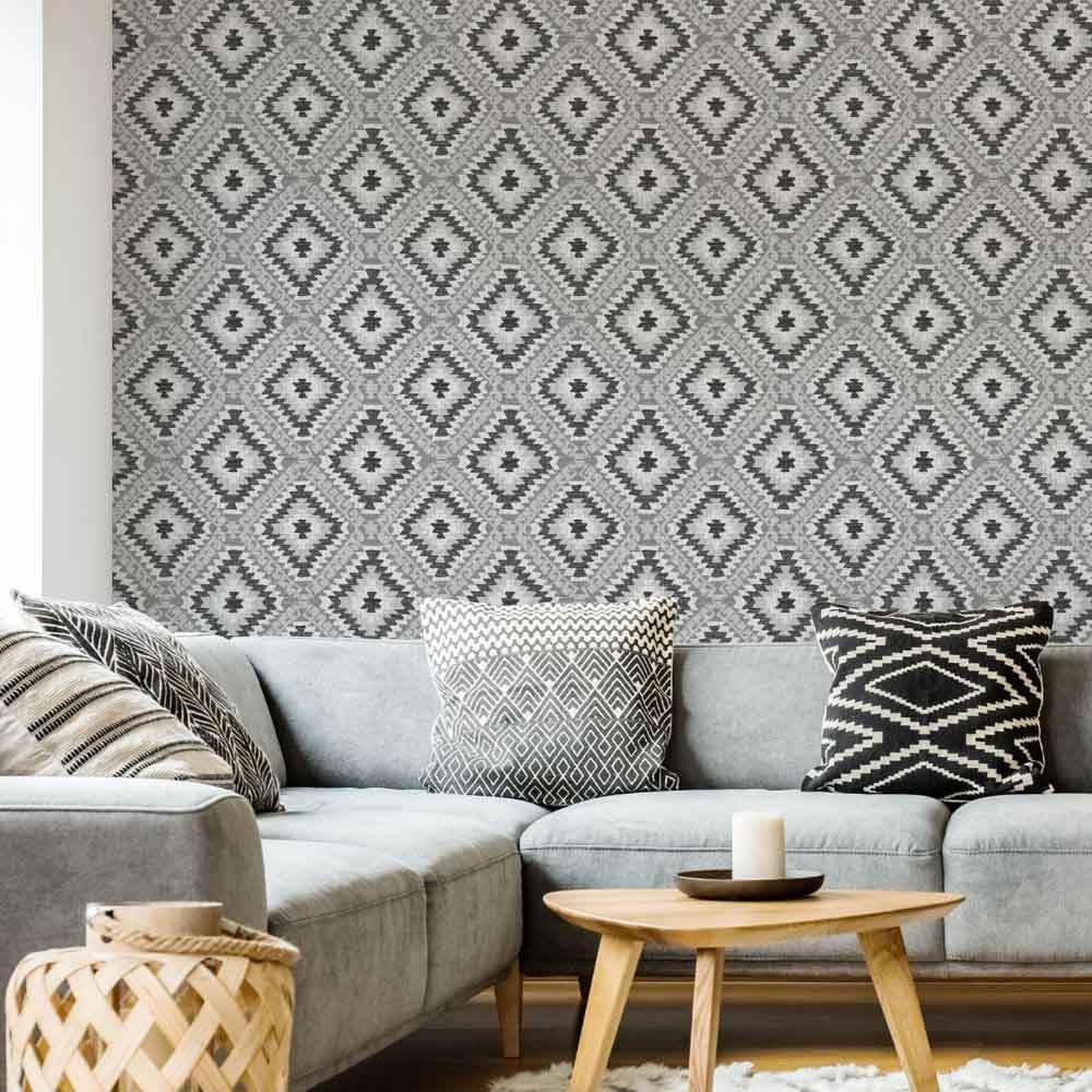 Add global flair to your home with the Superfresco Colours Aztec Geometric Monochrome Wallpaper. This contemporary wallpaper boasts a bold, monochromatic Aztec design with a textured finish that mimics the look of a luxurious woven fabric. The straight match pattern is easy to hang, and the vinyl material is peelable, making it perfect for any living space. Its textured surface subtly hides minor wall imperfections. Each 10m long roll is 52cm wide, and application requires pasting the paper.