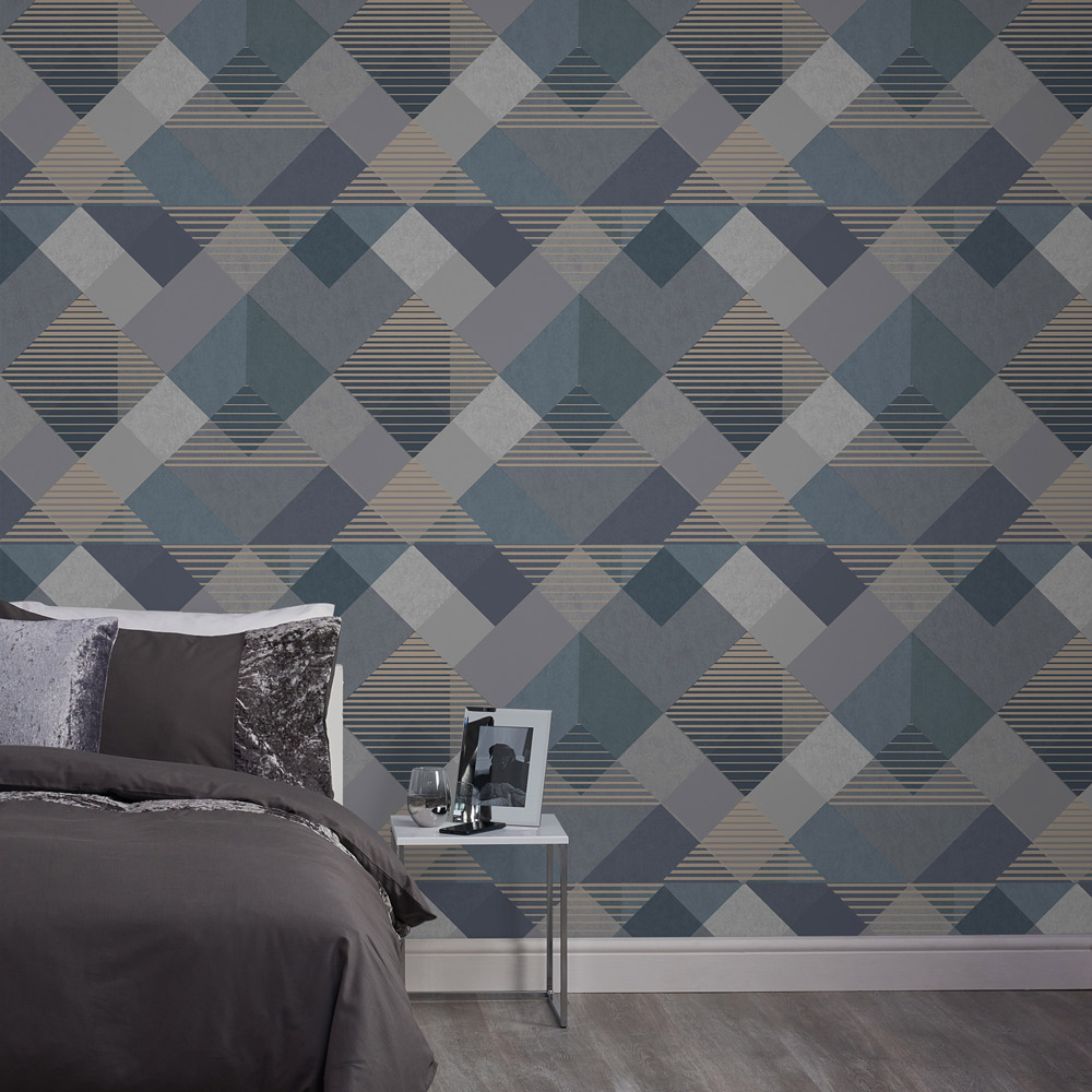 Superfresco Easy Kaleidoscope Denim Wallpaper brings a touch of opulence to your home. The geometric design creates a captivating optical illusion, enhanced by a luxurious metallic finish. Sustainable and eco-friendly, this wallpaper boasts water-based inks, is phthalate-free, and is produced by a CO2-neutral business. Paste-the-wall application makes hanging quick and easy. Washable and durable, it',s ideal for bedrooms, living rooms, and hallways. With a straight match design that repeats every 53cm, each 10m roll is 52cm wide.