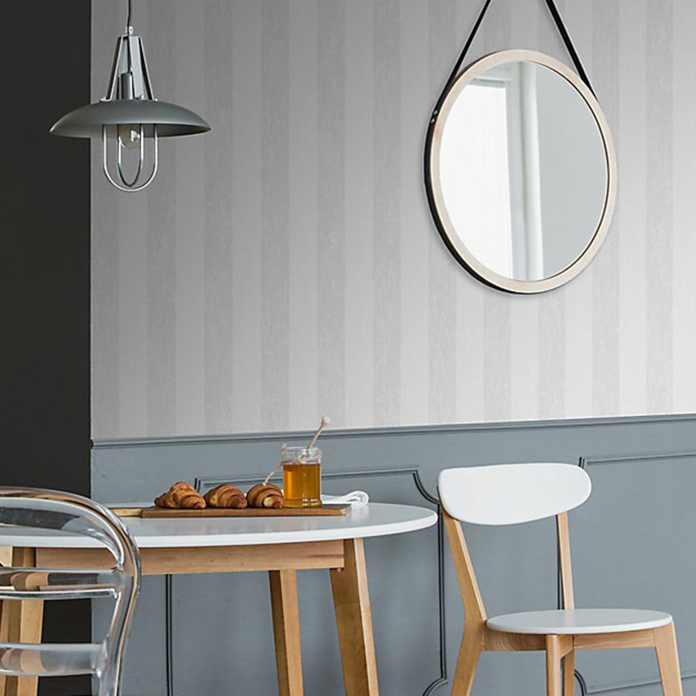 Transform your walls with the Easy Mercury Stripe wallpaper. This stylish design features a classic stripe pattern in soft metallic silver and pale grey with a contrasting matte finish, adding personality and sophistication to any room. Offering excellent protection against everyday wear and tear, it's a perfect choice for living rooms, bedrooms, or dining areas. With a roll width of 52cm and a roll height of 10m, and a straight match pattern, application is paste the wall.