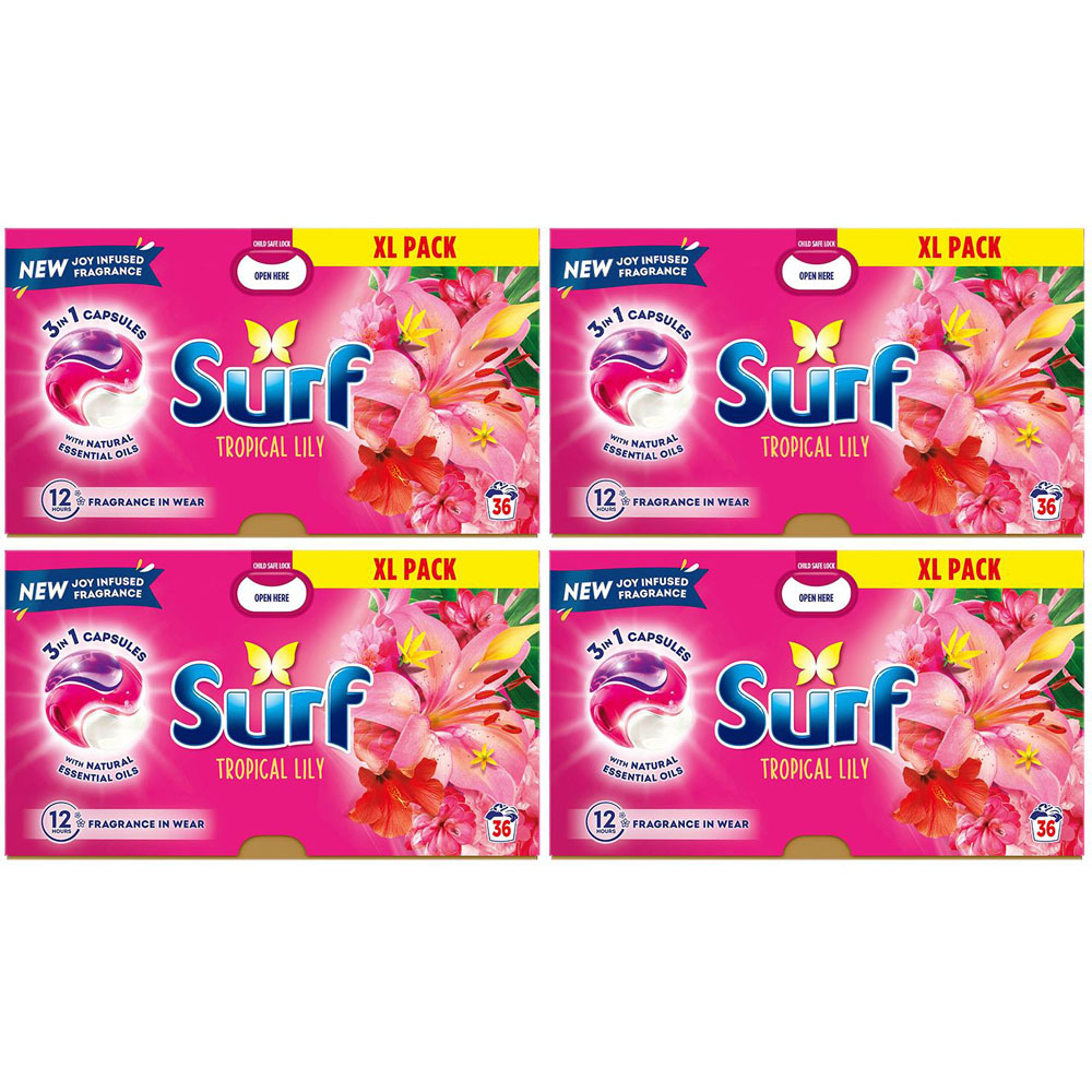 Surf 3 in 1 Tropical Lily Washing Capsules 36 Washes 4 Pack