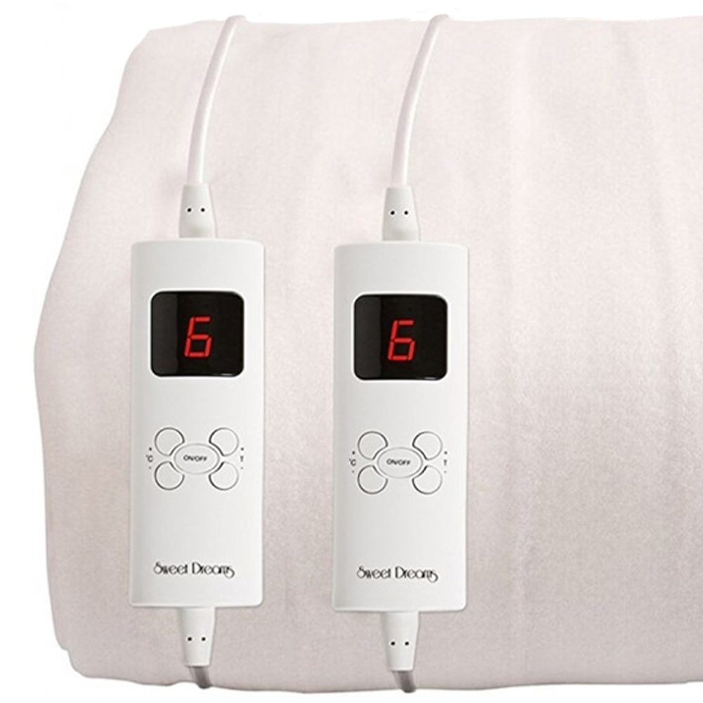 Indulge in restful nights with the Sweet Dreams Double Fitted Electric Blanket. Crafted from premium materials, this blanket boasts exceptional durability, ensuring years of cosy comfort. Ultra-thin, virtually invisible wires and a deep, elasticated skirt provide a snug fit, cradling your mattress for ultimate relaxation. Enjoy personalized warmth with six heat settings and nine timer options, making it the perfect all-season companion. Built-in overheat protection and automatic shutoff provide peace of mind for worry-free use. Simply detach the removable controller and wash the blanket at 30°C. Stored conveniently in a zip-up storage bag, it's ready for warmer months. Measures 193 x 137 cm.